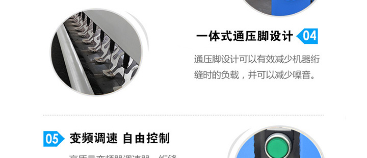 產(chǎn)品簡介:本機(jī)型設(shè)計(jì)結(jié)構(gòu)合理,壓腳裝在壓腳套上,并用壓腳彈簧頂住,使其壓腳套緊貼減震裝置上,工作時(shí)減震裝置上的毛氈能起到很好的減震、降噪作用,改善了工作環(huán)境。